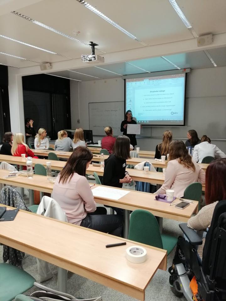 Petek je bil namenjen predvsem spoznavanju med članicami, pregledu dosedanjega dela in iskanju ključnih ciljev za novo študijsko leto, zvečer pa je bilo na sporedu neformalno druženje v Kavarni Tiskarni. V soboto smo si za ogrevanje ogledale motivacijski TedX video, nato pa smo prisluhnile predavanju o komunikaciji, opravile fotografiranje ter se seznanile s celostno podobo društva. Popoldan je bil rezerviran za delo po skupinah in pripravo dogodkov, s katerimi vas bomo razveseljevale v študijskem letu 2018/19 – v kratkem lahko že pričakujete naš prvi letošnji Business Brunch! Po napornem, a produktivnem dnevu, smo celoten vikend zaključile ob večerji in sproščenemu druženju.